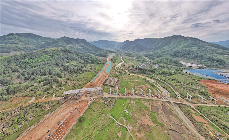 在鳌峰山麓,竹甲大桥桥面铺装完成、大甲隧道左洞顺利贯通、东峰枢纽互通悬浇桥首座主墩封顶……建设者穿山越岭拼出宁古高速建设“加速度”。