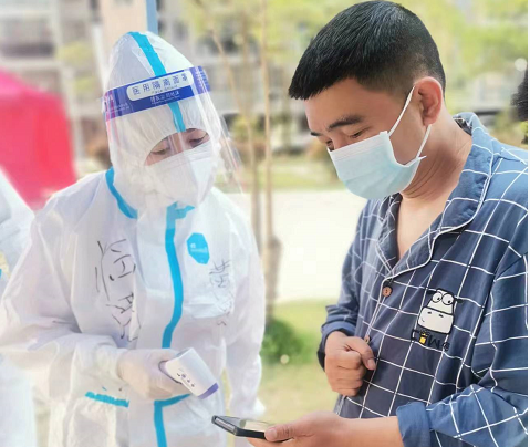 党员黄兰同志下沉金溪社区、湖滨社区,化身“大白”,在核酸采样点认真做好体温检测、引导群众提前准备好采集码等工作,同时在湖滨社区中心协助做好社区人员信息登记工作,高质量完成筛查任务。