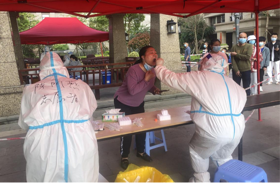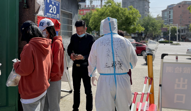 “党员干部身体吃得消的,应踊跃报名,家乡危难人人有责”“纪检监察干部无特殊情况的,全员参加”公司党委委员、纪委书记周晖在内部联络群不断号召。因身体原因,3月底刚刚做完肺部手术,本应听从医生建议居家休养1个月的他,心系疫情防控工作,时刻不忘叮嘱一线志愿者“一定要注意安全”。说归说,他也身体力行,4月14日加入党员突击队,顶着29度高温,在兰亭社区协助开展全员核酸检测工作。