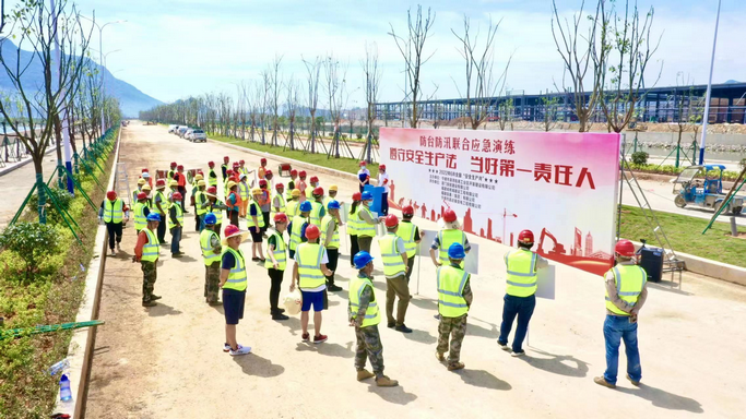 为积极响应全国第21个安全生产月“遵守安全生产法,当好第一责任人”活动主题,切实提高公司防汛抢险队伍的应急协调作战能力,5月30日,市临港公司联合各在建项目施工单位在漳湾大道工程现场开展防台防汛联合应急演练及综治平安、消防安全趣味竞赛。