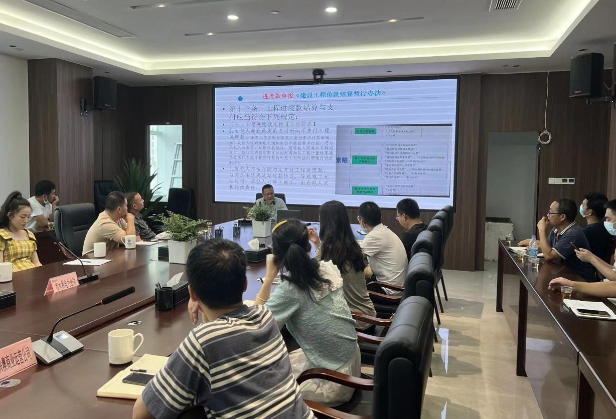 7月15日下午,公司工程部组织召开了工程进度款支付的相关政策文件宣贯会议。公司及各子公司分管领导、工程部及财务部负责人以及各在建项目负责人参加了宣贯会议,会议由公司总工程师陈开斌主持。