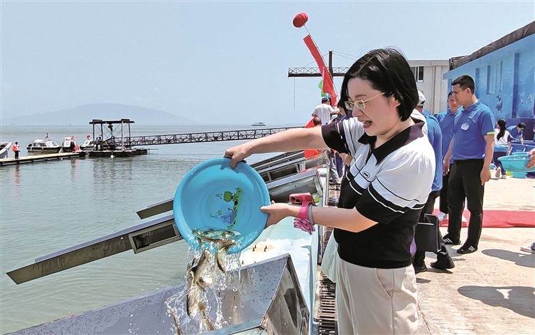 近年来,我市水生生物增殖放流工作有序开展,放流规模逐年扩大,在三都澳等重点水域增殖放流大黄鱼、真黑鲷等各类水生生物,让渔业资源得到良好恢复的同时也带动渔民增收。2020年至2022年间,我市利用各级财政、社会生态补偿等各类资金1700多万元,累计在我市三沙湾等主要流域海域,增殖放流大黄鱼、鲈鱼、厚壳贻贝等经济海淡水水生生物20多亿尾。(闽东日报记者 余根坤 文/图)