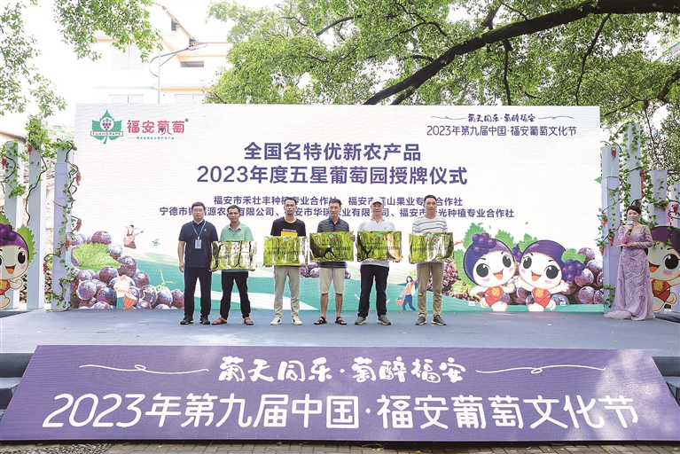 7月23日,由福安市人民政府主办,赛岐镇人民政府、福安市农业农村局、福安市文体和旅游局承办的“葡天同乐·萄醉福安”2023年第九届中国·福安葡萄文化节在福安市赛岐镇举办。文化节设置有星级葡萄园评定授牌仪式等环节,还有多巴胺葡萄音乐节狂欢夜活动,内容丰富、亮点纷呈。
