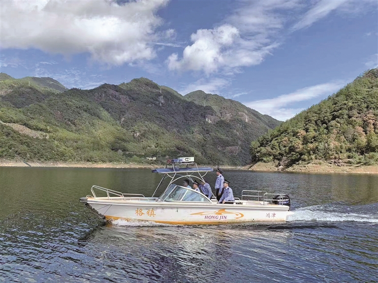 每天早上,天池警务队队员总会沿着水库进行日常巡逻。“我们联合乡林业办、护林队、防火队以及企业志愿者等力量,组成了‘天池警务队’,通过岸巡、水巡或视频巡方式,确保库区生态安全。”洪口派出所所长万里林介绍,警务队成立以来,已救助猕猴、苍鹭、雉鸡等多种珍稀野生动物14只,清除火灾隐患3处,收缴捕兽夹17个,拆除电网3个,动员群众主动上缴鸟铳1把。