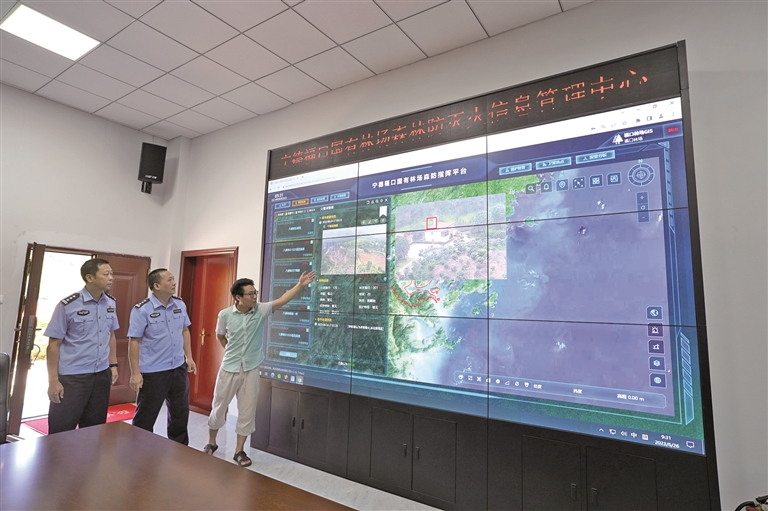 宁德福口国有林场会议室里,林场工作人员为记者展示了“三网一中心”森林防火试点项目信息管理平台,区域概况、火情统计、巡护事件、监控区域等信息一目了然。