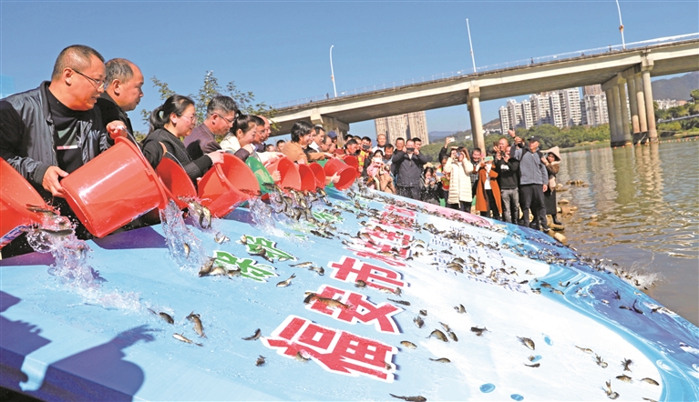11月21日,以“保护水生生物、建设生态福安”为主题的2023年福安市水生生物增殖放流活动在坂中桥头举办。