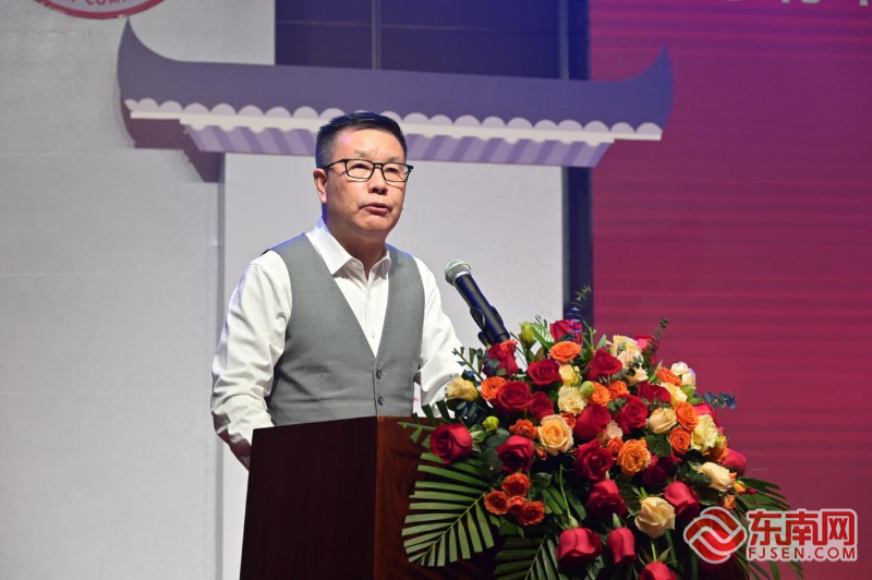福建省安徽商会会长程明在就职典礼上致辞。宁德安徽商会办公室供图