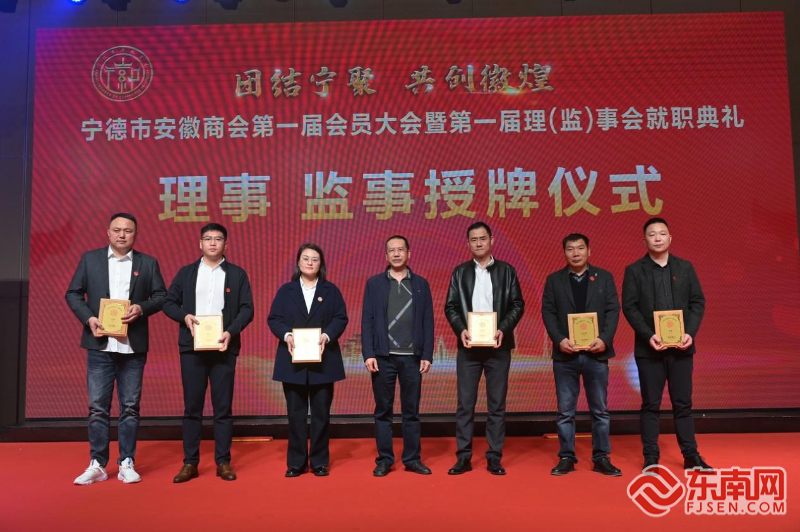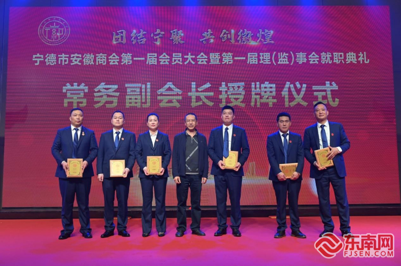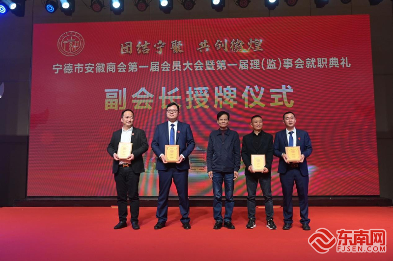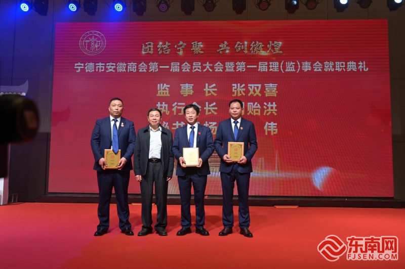 东南网宁德12月19日讯(本网记者 周涛)12月15日,宁德市安徽商会第一届第一次会员大会暨第一届理(监)事会就职典礼在宁德百翔三都澳大酒店隆重举行。宁德市政协副主席刘登健,原宁德市政协副主席陶敏辉,宁德市委统战部常务副部长吴会旺,宁德市委统战部副部长、市工商联党组书记徐燕蕴,宁德市商务局局长巫白,福建省工商联常委、福建省安徽商会会长程明,宁德市工商联副主席陈忠,宁德市工商联副主席朱光付,宁德市工商联四级调研员林开飞等领导出席就职典礼。
