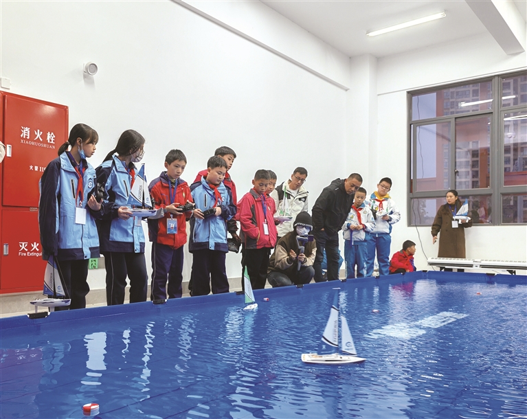 比赛现场,水火箭随着水和高压气体地喷出,以迅雷不及掩耳之势发射升空;船模型灵活地绕过障碍物,沿着规定路线快速前行;选手们遥控模型设备,模拟开展足球赛,撞击、进球……精彩动感的赛事,点燃在场人员的热情,彰显航模竞赛的独特魅力。
