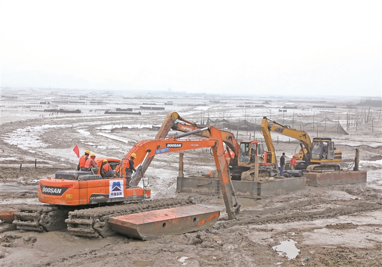 1月19日,宁德海洋生态保护修复项目在福鼎开工。在位于八尺门内湾的项目施工现场,记者看到数台大型机械设备已经进场,挖掘机频频挥舞长臂开展相关作业。