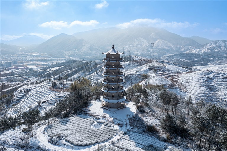 蕉城区镜台山靖海楼雪景。陈剑峰 摄